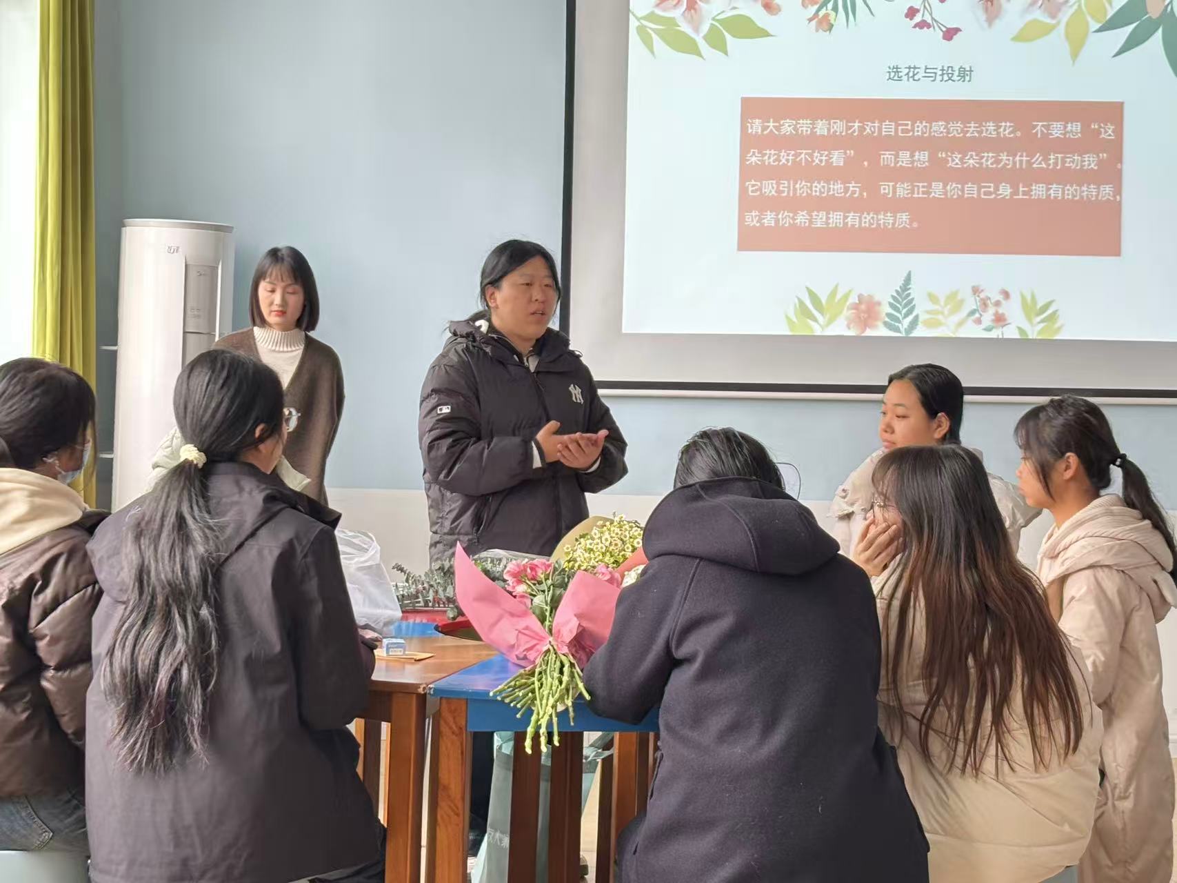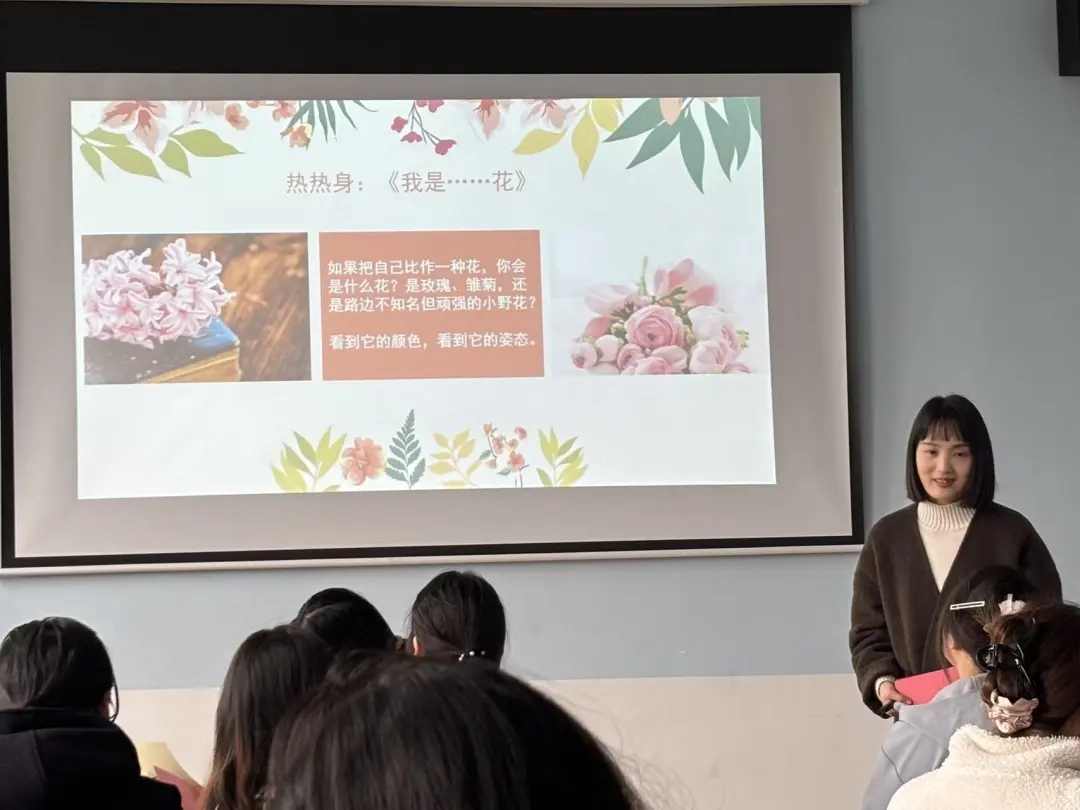 活动伊始,心理学社指导老师何杨老师带领同学们开启“以花喻己”热身互动。大家勇敢表达,分享自己如同哪一种花朵:有人如向日葵般向阳而生,有人似康乃馨温柔坚定,有人像雏菊自在纯粹。每一种姿态,都是独一无二的风景;每一个你,都值得被温柔看见。在老师轻柔的引导下,同学们沉浸在想象之中,走进专属自己的心灵花园,找到那朵只属于自己、静静绽放的花,在探索中学会接纳自我、悦纳自我。