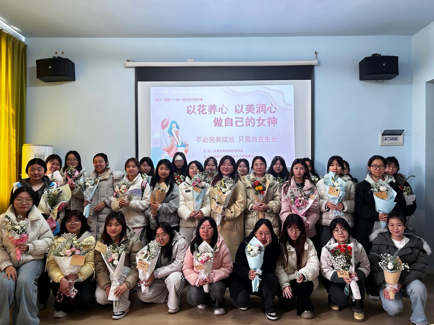春风送暖,花开正好。在温馨美好的三八妇女节来临之际,为引导同学们学会关爱自我、欣赏自我、拥抱自我,商洛学院花意美学社与心理学社联合开展“悦己•绽放”主题插花活动。以花为喻,探寻内心力量;以手造物,感受生活温柔。本次活动将心灵探索与花艺创作相结合,带领大家在花香中遇见自己,在创作中悦纳自己,在属于女生的美好节日里,定格独属于自己的芳华与光芒。